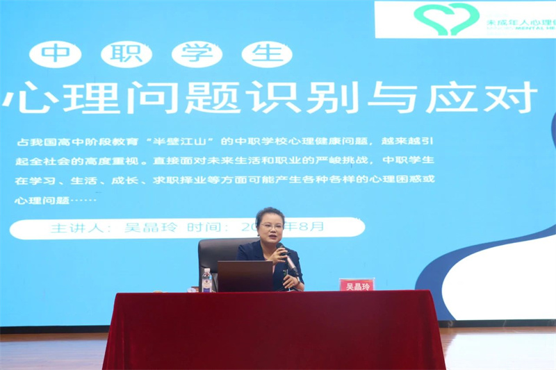 专家引领,理论为基,以智克难,夯实业务根基。心理健康专家吴晶玲通过丰富生动的案例阐明了当前中等职业学校德育政策要求,分析了学生现状,提供了“预示出现潜在危机”、“潜在危机评估维度”等多重评估方法与危机干预通用“六步法”、“四级靶向心理支持体系”等有效预防干预手段。她用专业的理论知识为教职工点燃德育“心”引擎,开启德育“心”动力。