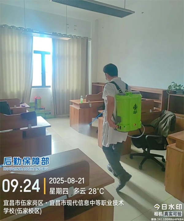 金秋送爽,丹桂飘香,新学期脚步渐近。为切实保障全体师生的身体健康和校园安全,营造整洁、卫生、安心的学习生活环境,学校后勤保障部提前部署,精心组织,开展了全面而细致的消杀工作,用实际行动为新学期保驾护航。