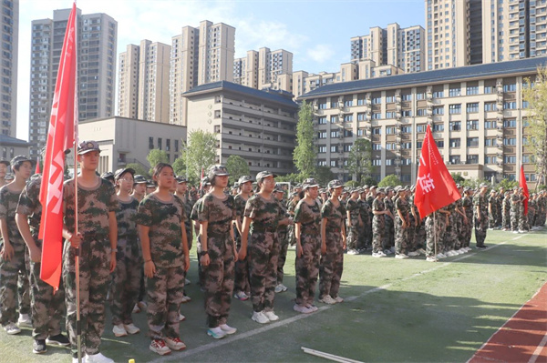 随着党支部书记田水荣宣布“2025级高一军训正式开营”,为期七天的军训生活正式开启。未来七天,同学们将在教官的指导下,进行队列训练、军事技能、内务整理、国防教育等多项内容的学习和训练。相信通过这次军训,同学们必将收获坚毅的品格、严明的纪律和深厚的友谊。