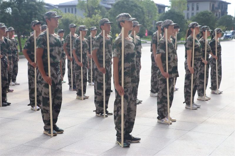 同学们军姿挺拔,步伐整齐,反复练习站军姿、转体、齐步走等基础动作,每一个动作都力求标准,每一句口号都响亮有力。从最初的不适应到如今的整齐划一,同学们在一次次重复与磨合中,不仅掌握了基本的军事技能,更展现了中职学子吃苦耐劳、昂扬向上的精神风貌。烈日下,汗水浸透了衣衫,但同学们的目光依然坚定。