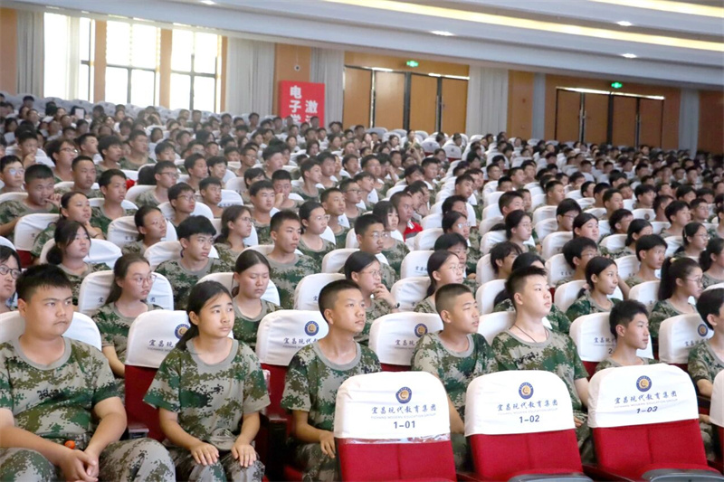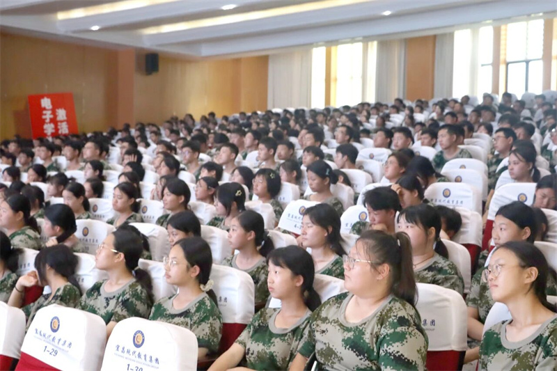 军训动员大会在田径场隆重举行。出席本次军训动员大会的领导有集团董事长、党支部书记田水荣,集团总经理胡一杰,党支部副书记、校长吴昌钧,督学李朝晖,副校长肖飞,学生发展处主任帅月,课程处主任谢华军,招生就业处主任杜胜男,高一年级主任彭佳维,高一年级副主任周奥玲。