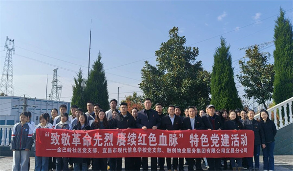 春风拂松柏,清明祭忠魂。为深切缅怀革命先烈的丰功伟绩,传承红色基因,强化党性修养与青年思想政治引领,在清明节来临之际,现代信息学校党支部联合金巴岭社区党支部、融创物业服务集团有限公司宜昌分公司,共同前往金巴岭烈士陵园开展“致敬革命先烈 赓续红色血脉”特色党建活动。我校党员教师带领共青团员学生代表,与共建单位党员同志一同肃立在烈士纪念碑前,以庄重仪式致敬英烈、砥砺初心。
