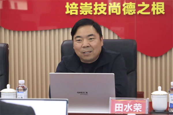 董事长田水荣代表学校对郑锋教授一行的到来表示热烈欢迎。他详细介绍了学校的办学理念、发展历程、专业布局及核心优势,重点阐述了学校在产教融合、实战育人方面的探索与实践,强调学校始终立足区域经济发展需求,以培养高素质技术技能人才为核心,全力搭建“产-学-研”一体化平台,为企业发展输送实用型人才、为区域产业升级注入动力。