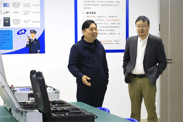 在校企实践中心,来访一行深入了解了学校与企业的合作模式,实地察看了实训场地布局、学生实训等情况,对学校“理论学习—场景实训—实战操盘”的全链条电商人才培养体系给予高度评价。在无人机实训基地,相关负责人介绍了实训课程设置、设备配备及人才培养成果,结合宜昌低空经济发展布局,展现了学校在无人机应用人才培养方面的前瞻布局。