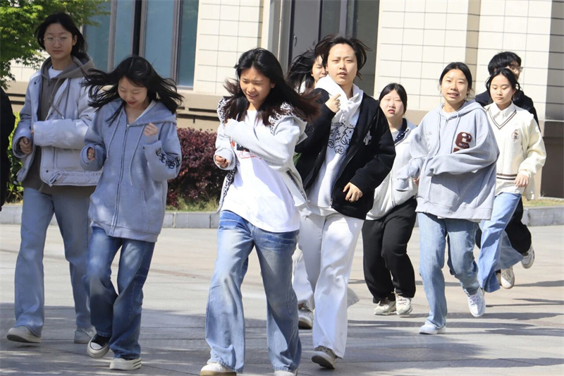 各班级班主任迅速组织学生捂住口鼻、弯腰低姿,按照预定疏散路线,快速、有序地撤离至校园指定安全区域。撤离过程中,学生们听从指挥、不推不挤、规范操作。到达集合点后,各班级负责人立即清点人数,并将结果及时上报,确保无一名学生遗漏。