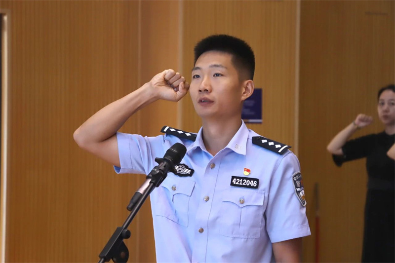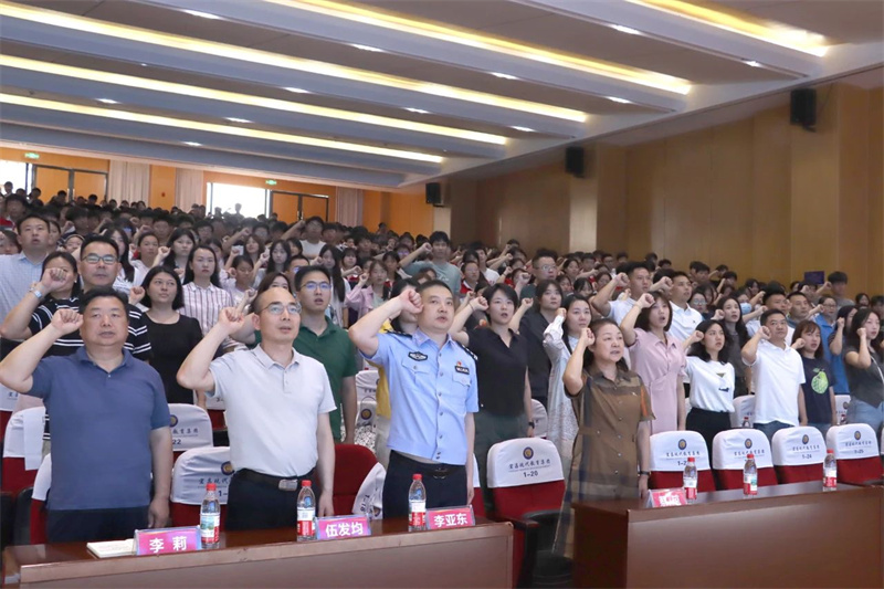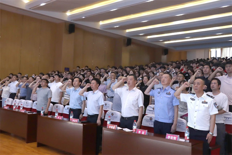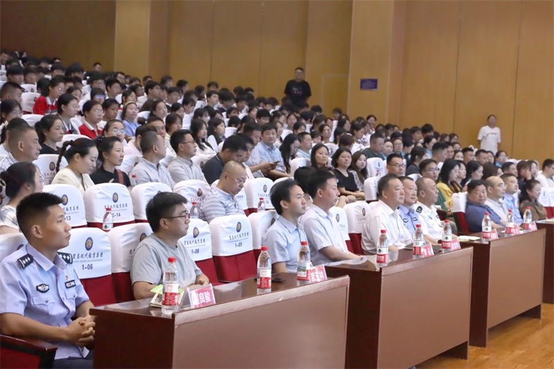 全体肃立,宜昌市强制隔离戒毒所教育矫治科副科长程良骏带领大家进行禁毒宣誓。铿锵誓言响彻校园,这是师生们对 “远离毒品,守护青春” 的庄重承诺,彰显与毒品斗争到底的坚定决心。