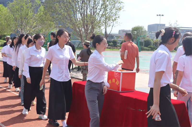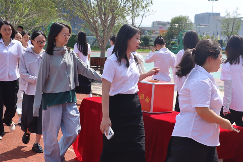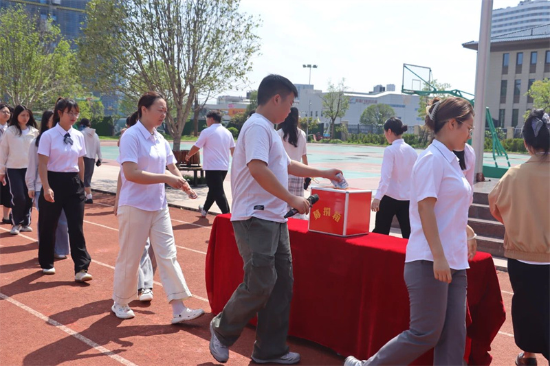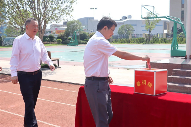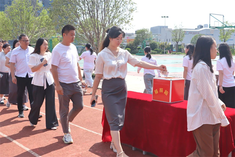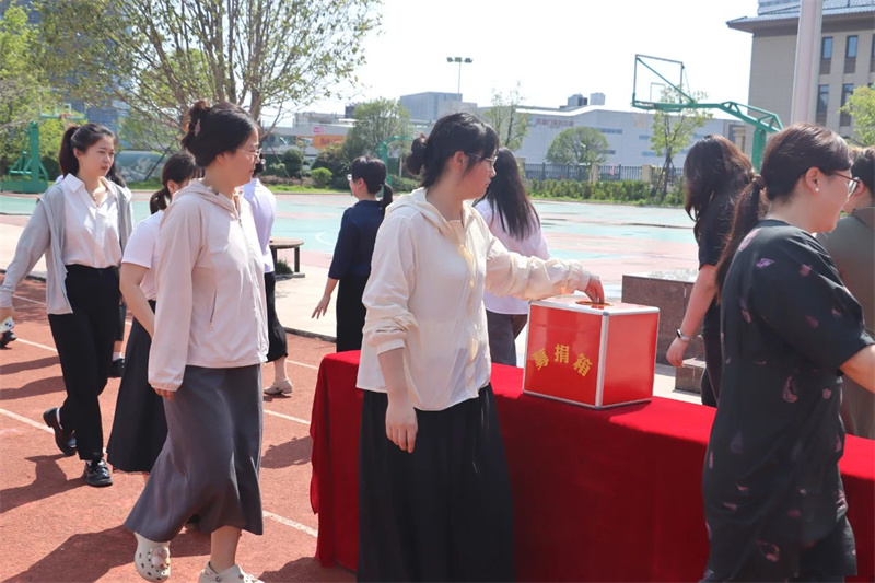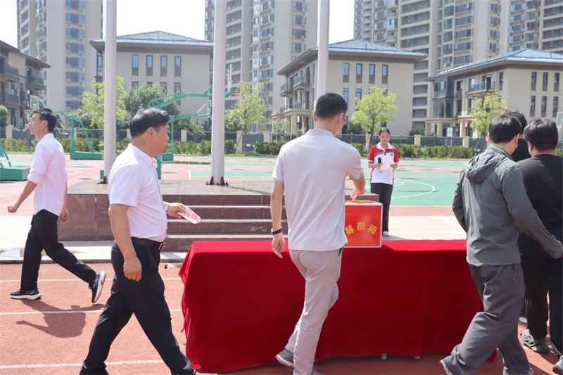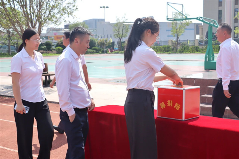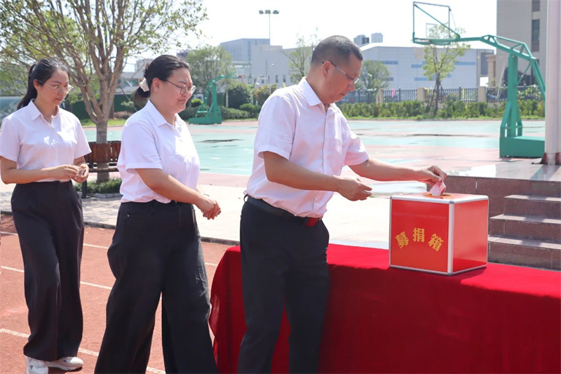随着主持人倡议结束,党员干部率先垂范,带头将爱心捐款郑重投入箱内。他们的行动迅速带动了全校教职工。教师们积极响应,依次投入捐款,以实际行动表达对慈善事业的支持。现场氛围在教职工的踊跃参与中迅速升温。