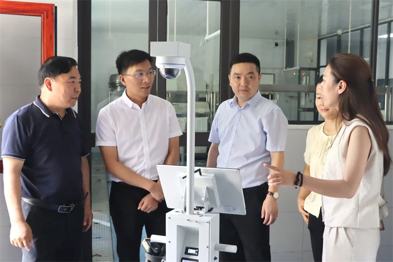 6月24日,伍家岗区副区长赵翔、办公室副主任余艺,伍家岗区市场监督管理局、伍家乡监管所副所长胡开罗深入宜昌市现代信息学校开展调研工作,就“校园餐”食品安全工作开展调研检查。宜昌现代教育集团董事长田水荣、总经理胡一杰、校长吴昌钧、后勤保障部副部长龚红艳全程陪同。