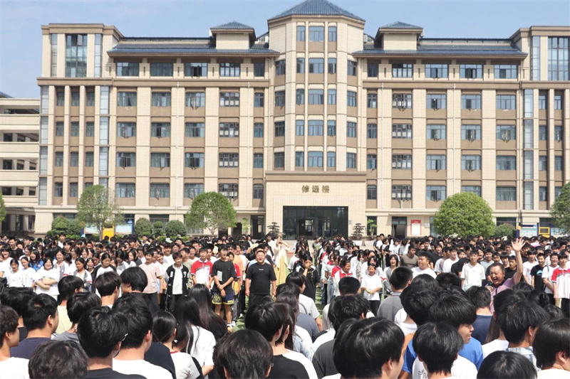 青春逢盛世,奋斗正当时。距离2025年高考仅剩1天,6月5日课间,宜昌现代信息学校全体师生齐聚操场,以最炽热的呐喊、最真挚的祝福,为即将奔赴考场的高三学子加油鼓劲,一场热血沸腾的壮行仪式,点燃了整个校园的青春火焰。