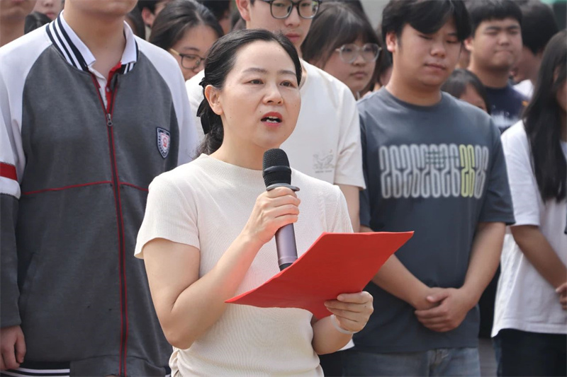 大会尾声,年级主任吴成军以“纪律就是战斗力”为核心,提出冲刺阶段四项要求:一是严守时间规范,确保准时到班,高效利用碎片时间;二是专注学习,保持教室零闲聊、自习零走动;三是科学复习,紧跟教师指导,杜绝盲目刷题;四是稳定心态,发扬互助精神,积极沟通解决问题。吴成军以“用16天的严于律己,换考场上的从容绽放”激励全体学生,号召以自律决胜高考。