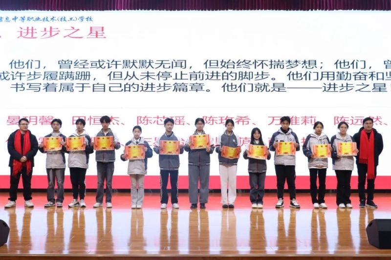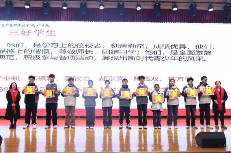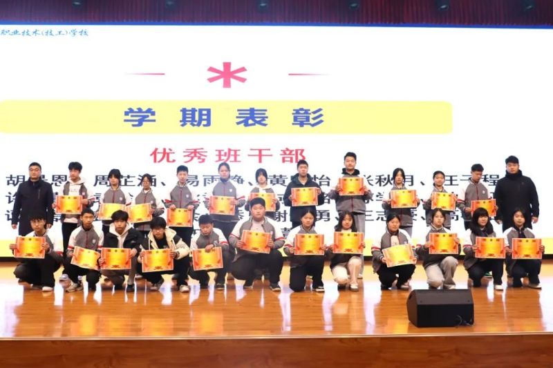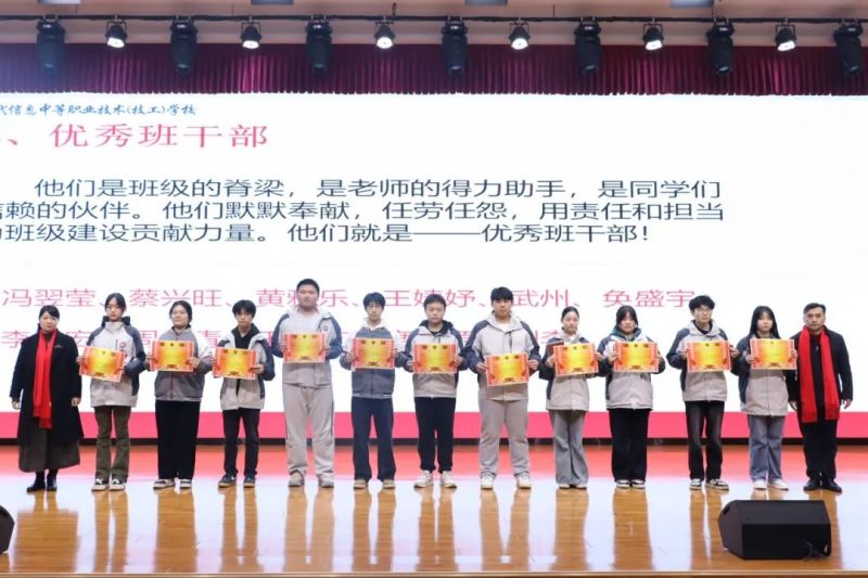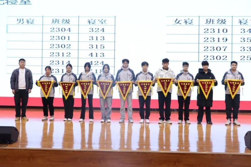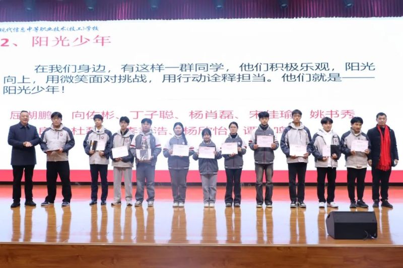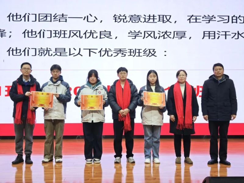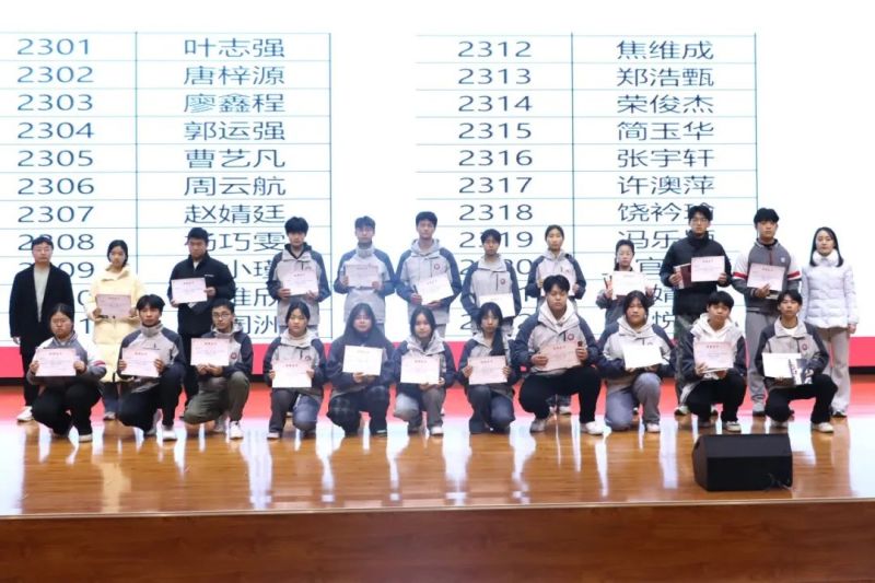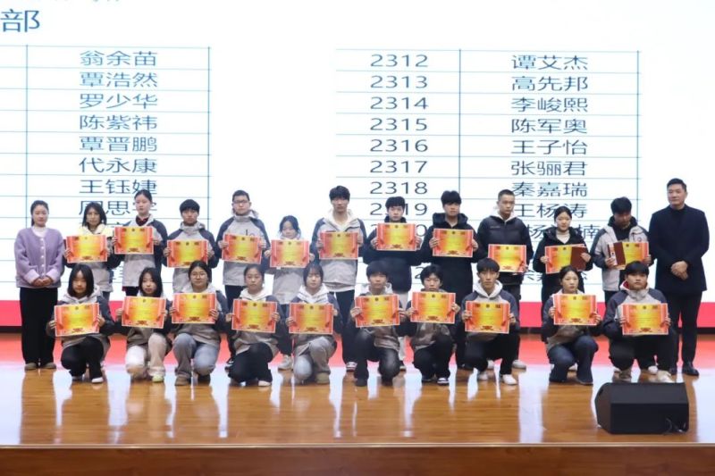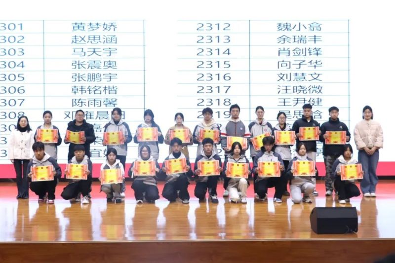 在表彰环节中,百余名优秀学子登上荣耀舞台。“学习标兵”以笔为剑、以梦为马;“三好学生”德智体兼修,诠释全面发展;“优秀班干部”躬身服务,彰显责任担当;“进步之星”逆风翻盘,书写励志篇章;“阳光少年”以温暖感染校园,传递向上能量。集体荣誉同样熠熠生辉,“阳光班级”凝心聚力,“阳光寝室”和谐共进,展现出团结协作的青春风貌。校领导依次为获奖者颁奖,激励着每一位学子见贤思齐、奋楫争先。