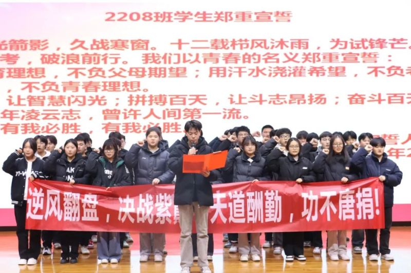 十八而志,大任始承。这是一场为梦想而战的出征仪式,是青春奔赴理想的激昂号角,更是向着高考战场发起最后冲锋的集结号。希望高三学子们在未来的一百多天里,不忘师长殷殷嘱托,握笔如执剑,百炼成钢,让青春焕发光华;搏此一战,为梦想铸就通途!待六月蝉鸣之时,折桂而归,揽尽芳华,圆梦高考,荣耀现代!