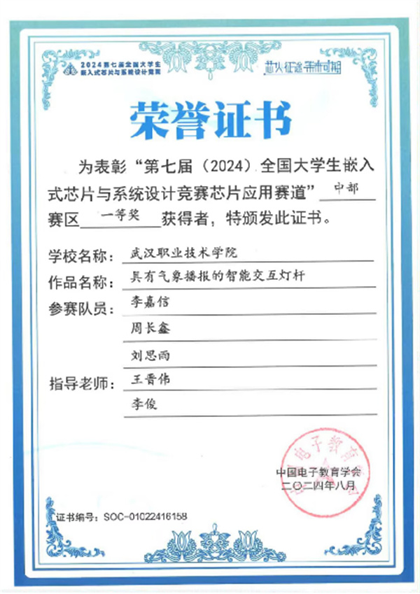 周长鑫,2023年毕业于宜昌市现代信息中等职业技术学校计算机专业,现就读于武汉职业技术学院移动应用开发专业,在多项国家级、省级技能竞赛中屡获佳绩,是一颗冉冉升起的技能新星。