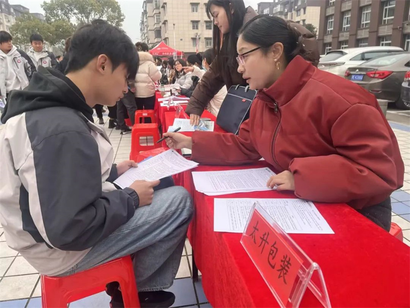 招聘会现场人头攒动,30余家企业涵盖信息技术、化工、教育、新能源、智能制造等多个领域,提供岗位超300个。学生们服装统一,手持简历穿梭于展位间,与企业HR深入交流岗位需求、职业发展路径及行业趋势。来自2314班的田杨宇同学表示:“通过与招聘方的对话,我意识到专业知识的积累固然重要,但沟通能力和实践经验同样关键。在学校中学到的知识非常与时俱进,未来我会更有针对性地提升综合素养,以期能够走进本地大型企业的管理岗。”