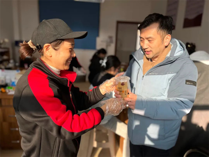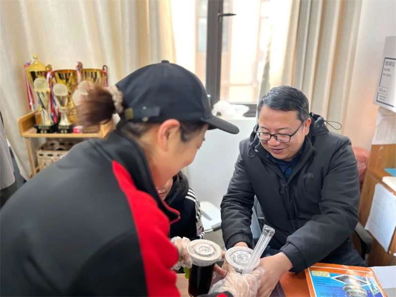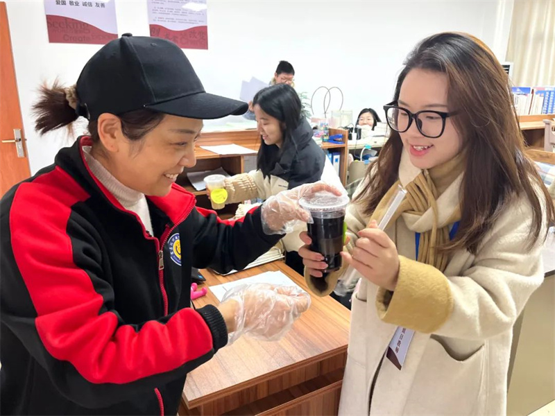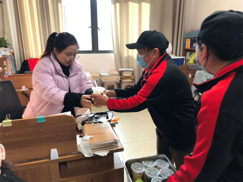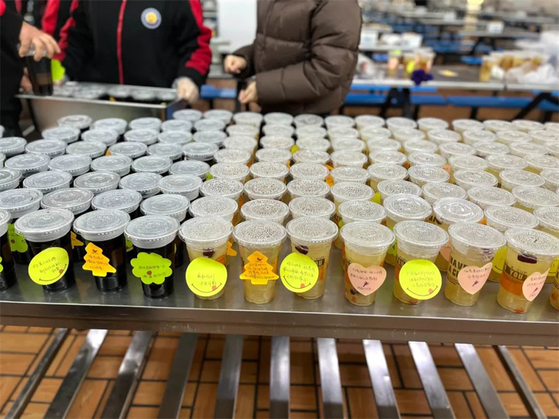 每一杯茶都有我们后勤部老师DIY手写暖心祝福语,让大家在忙碌的工作之余,感受到来自后勤员工的贴心。看着师生们脸上洋溢着的笑容,后勤人员也感到无比欣慰。此举不仅驱散了冬日的寒意,更让教职工们在新的一天里充满活力。