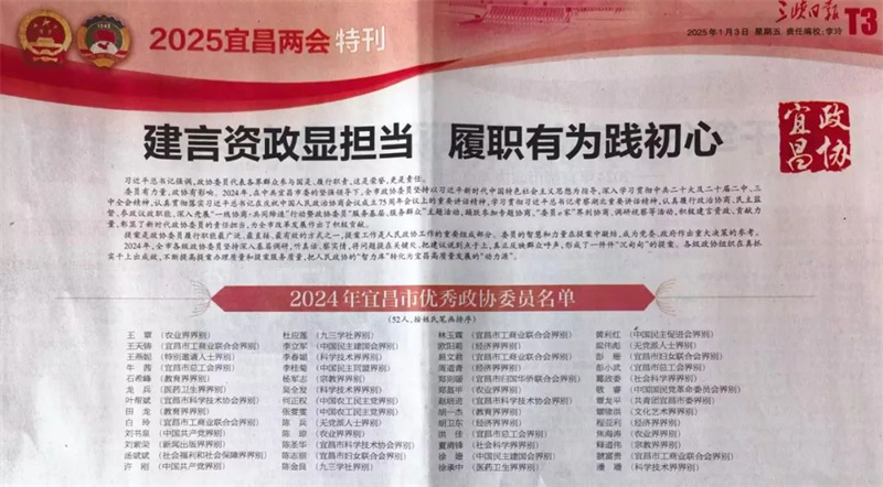 委员履职,服务为民。提案有力,办理有效。2024年,在中共宜昌市委的坚强领导下,市政协围绕中心、服务大局,认真履行政治协商、民主监督、参政议政职能,为全市经济社会高质量发展再上新台阶作出了积极贡献,全市涌现出一批优秀政协委员和优秀提案,为推进我市政协事业新发展做出了努力,为加快建设长江大保护典范城市、打造世界级宜昌贡献了智慧和力量。