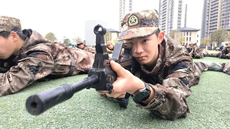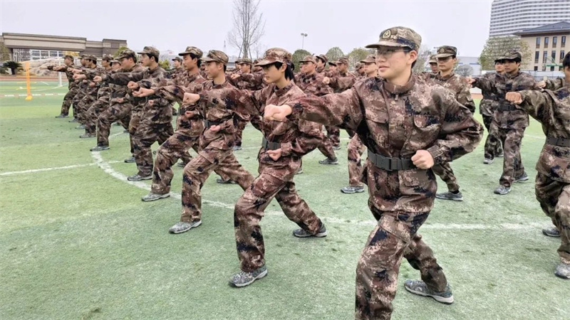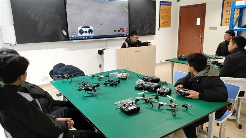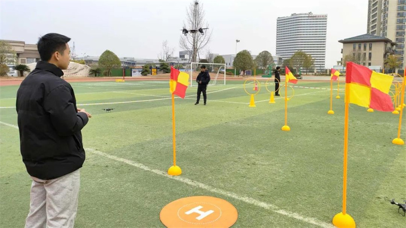 与此同时,操场上的军事社团和无人机社团也在紧张而有序地进行着他们的展演。军事社团的同学们身着迷彩服,队列整齐,动作规范,展示了当代青少年的飒爽英姿。无人机社团的同学们则操纵着无人机在空中翱翔,它们时而翻飞盘旋,时而俯冲直下,精湛的飞行技巧赢得了现场观众的阵阵掌声。