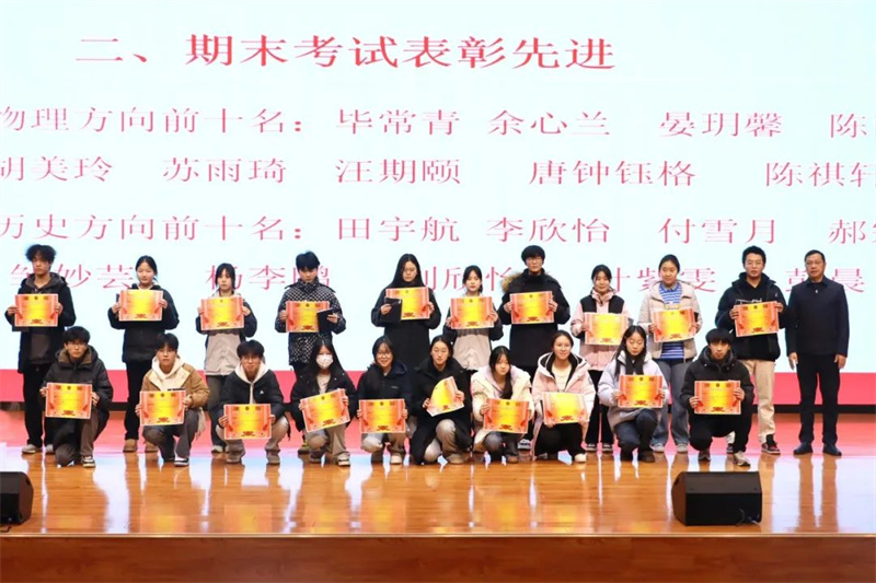 日月其迈,时盛岁新。紧张而又充实的高三上学期将要过去,为帮助学生总结以往得失,激励学生再前行,学校高三全体师生于2025年1月14日下午16:30在大礼堂举行了以“期末反思,再攀高峰”为主题的训导会,校长吴昌钧、副校长伍远明、课程发展处主任谢华军、年级主任吴成军参会,陈雅萌同学主持会议。