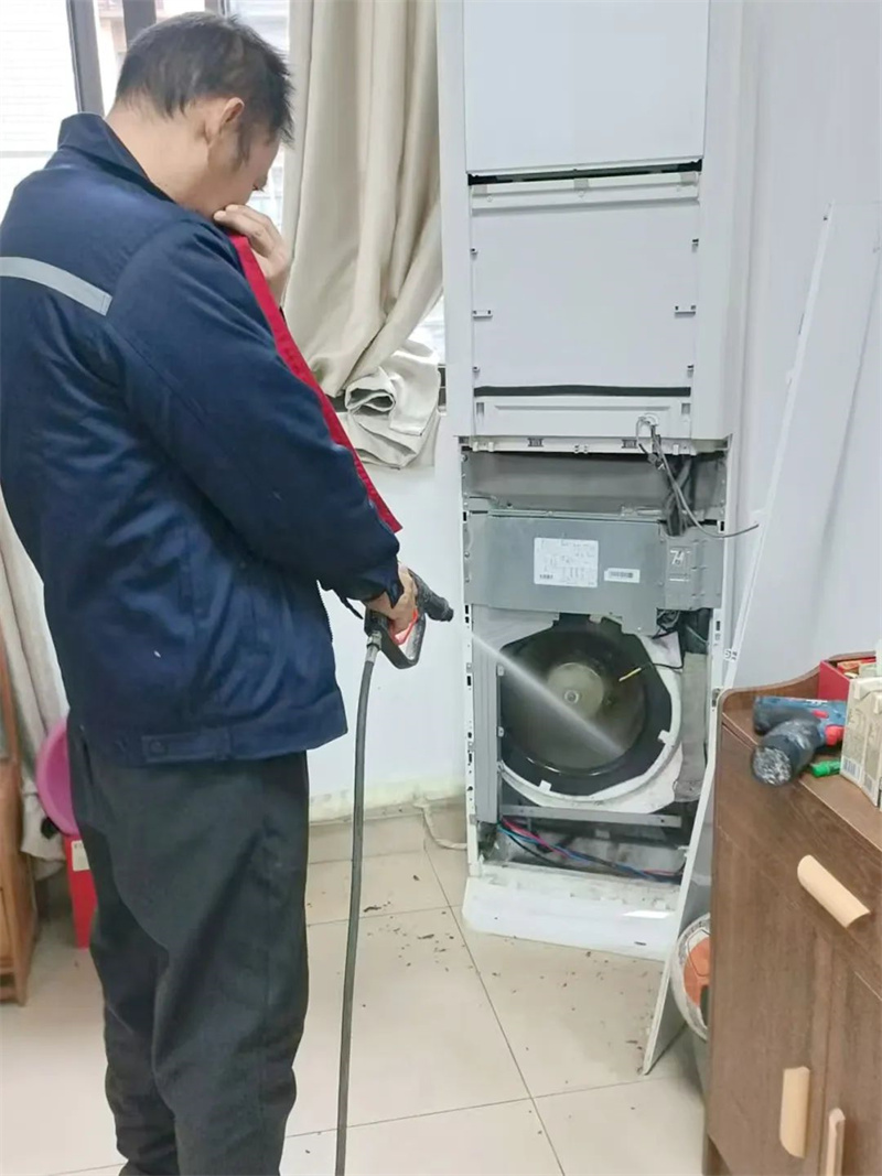 随着气温逐渐降低,后勤保障部对教学楼、寝室空调线路进行了排查,并对所有空调进行了清洗。