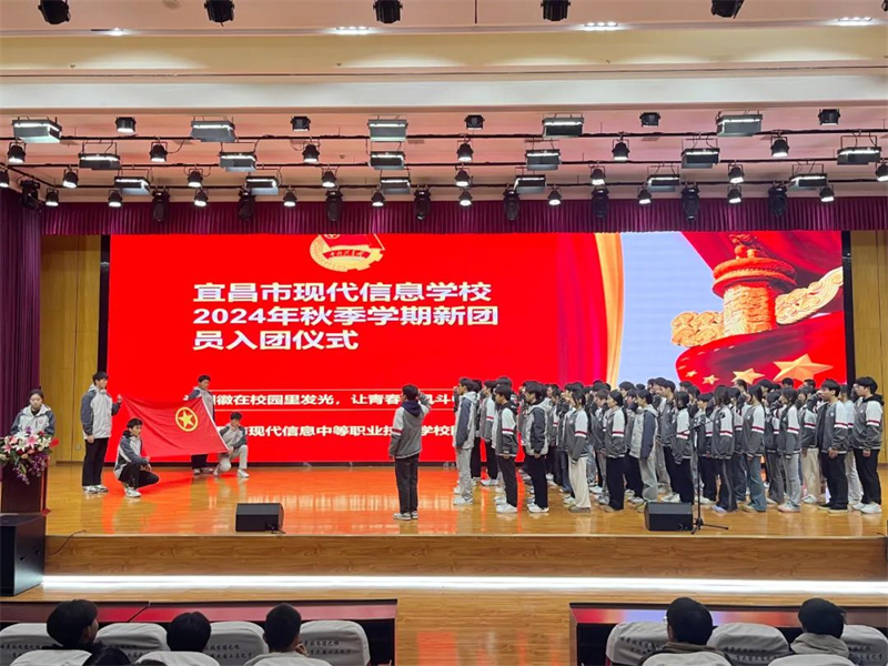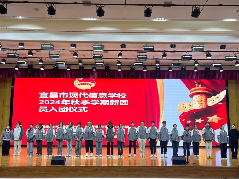 中国共产主义共青团是党的助手和后备军,是党联系青年的桥梁和纽带,是中国共产党领导的先进青年的群众组织,是广大青年在实践中学习中国特色社会主义和共产主义的学校。为了进一步壮大学校共青团队伍,为学校共青团组织注入新鲜血液,宜昌市现代信息学校共青团委组织了入团积极分子的团课培训以及团课结业考试,并于2024年12月15日隆重举行了2024年秋季学期新团员入团仪式。