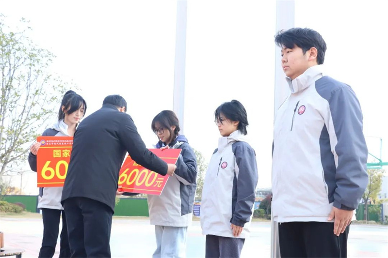 13.为了树立榜样,12月23日,学校举行了中等职业教育国家奖学金颁奖仪式,为2206班计算机专业张文琪、2209班数字媒体专业彭昕怡、2205班艺术设计与制作专业陈静淑三位同学颁发1.8万“国家奖学金”。