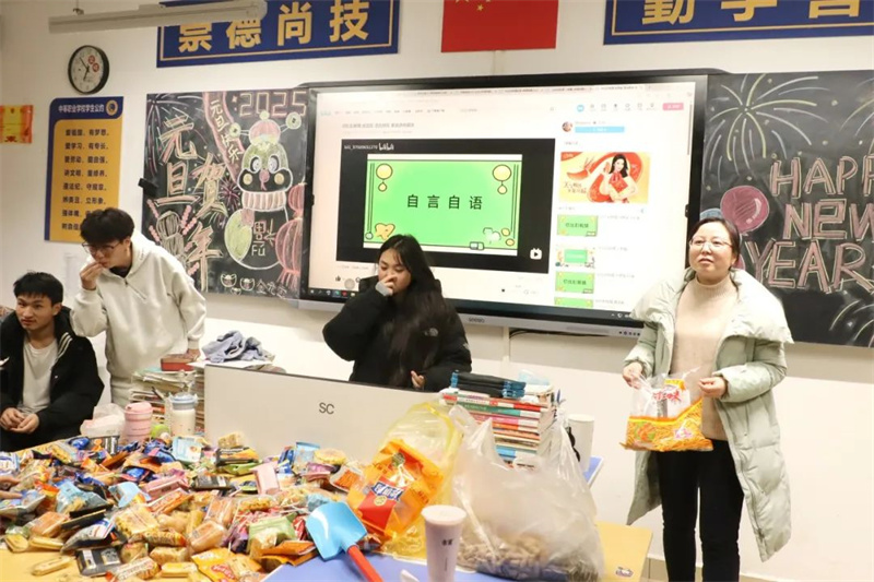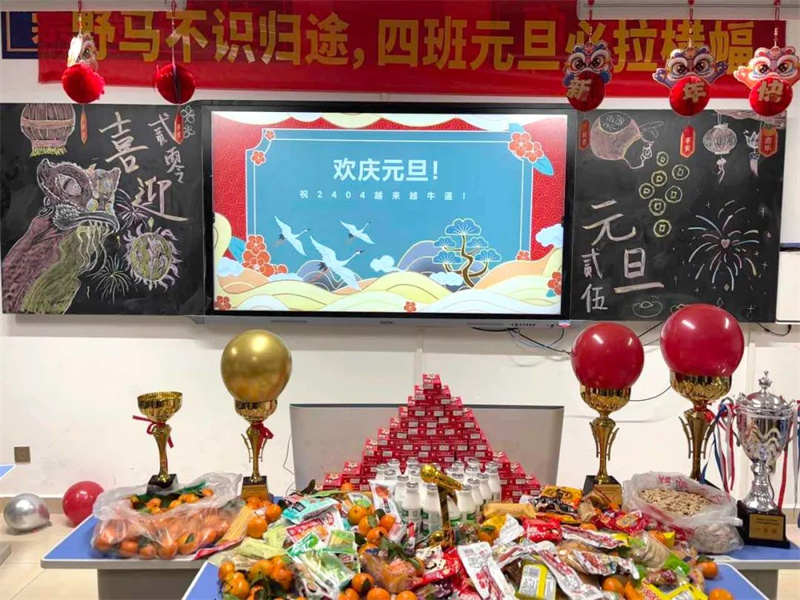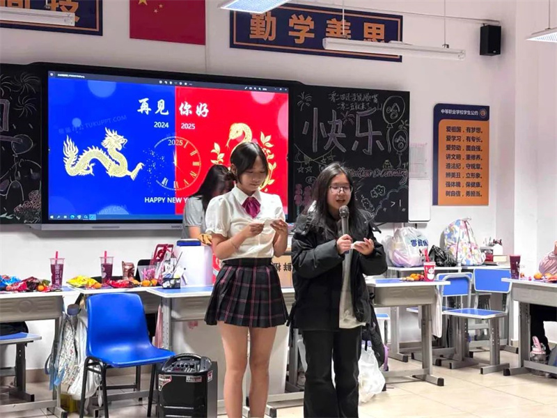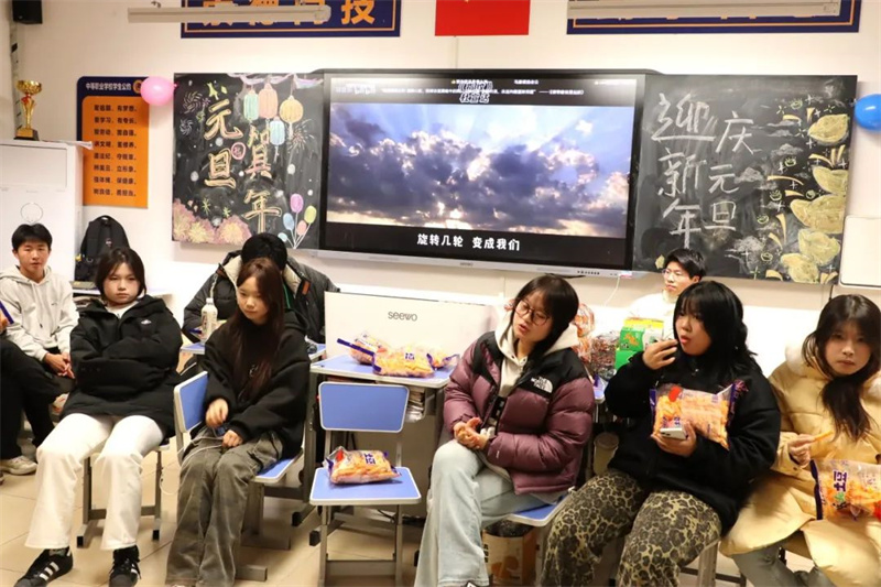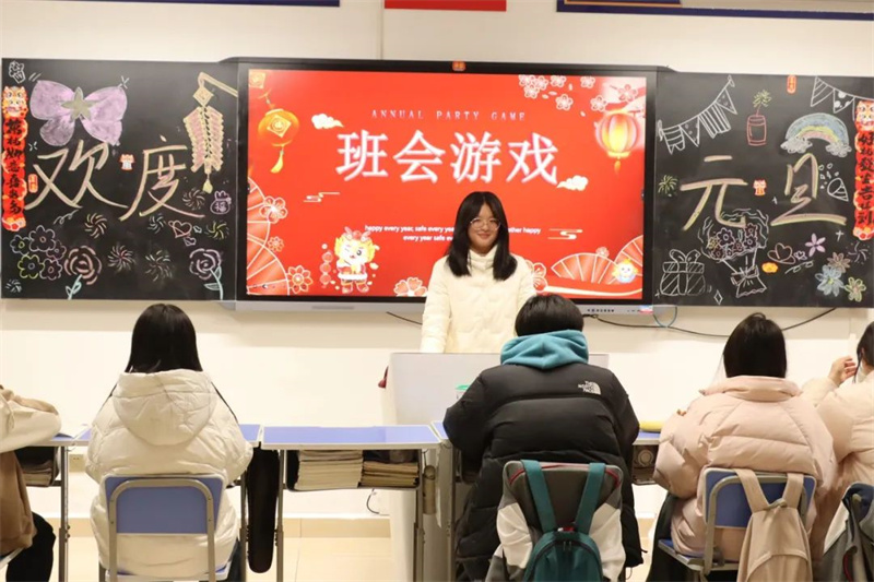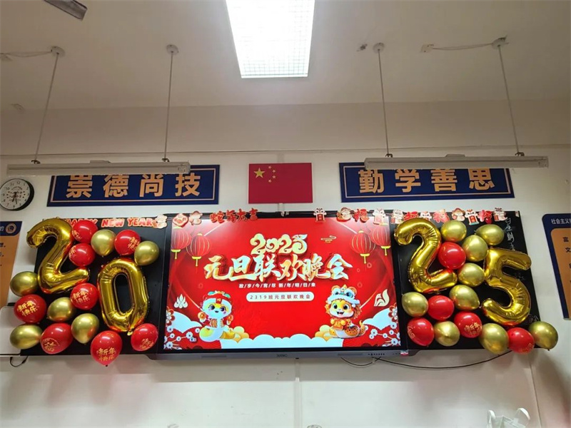 各班班级布置各具特色,活动形式丰富多彩,既有对2024年的总结回顾,又有对2025年的期盼展望;既有形式多样的暖场游戏,又有精彩纷呈的才艺展示;既有美食分享,又有精神上的饕餮盛宴。同学们用合唱、舞蹈、器乐演奏、相声、送对联等多种形式辞旧迎新,表达对新年的美好祝愿与期盼。火热的气氛驱散了冬日的严寒,欢声笑语不绝于耳。老师为同学们送上新年祝福语,为活动增添了浓浓的暖意,增进了班级凝聚力和师生间的深厚情谊。