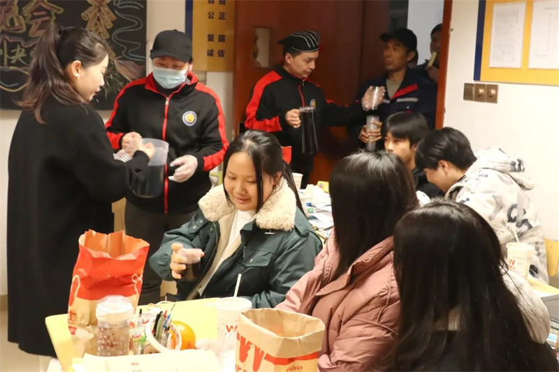 学校后勤保障部门给各班送来了节日的祝福和诚挚的问候,一杯杯热腾腾的姜汁可乐不仅传递了学校领导对师生的深切关怀,更彰显了学校的温度。情暖冬日,爱暖人心,希望收到这份温暖的学子,能够带着这份爱在新的一年里茁壮成长,扬帆远航!