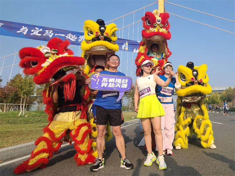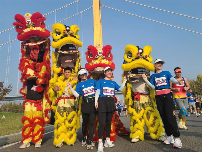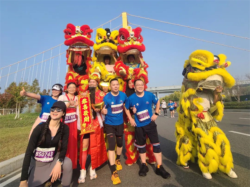 舞狮表演深受现场观众欢迎,与舞狮队拍照的运动员排成了长队,俨然成为活动现场最靓的拍照打卡地。