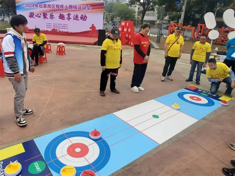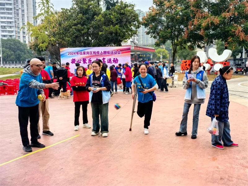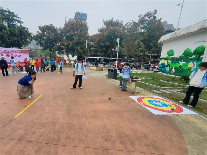 11月15日,在宜昌市残疾人联合会的指导下,以“凝心聚乐,趣享运动”为主题的残疾人趣味运动会在伍家岗区张家坡社区广场进行。
