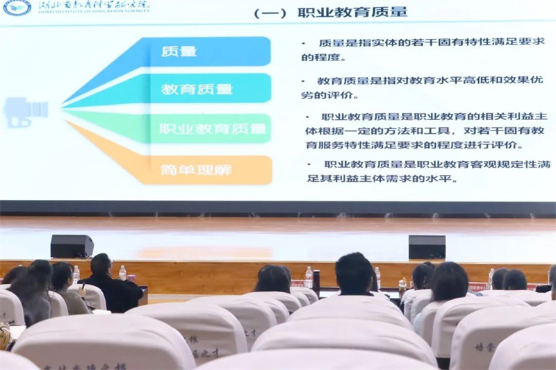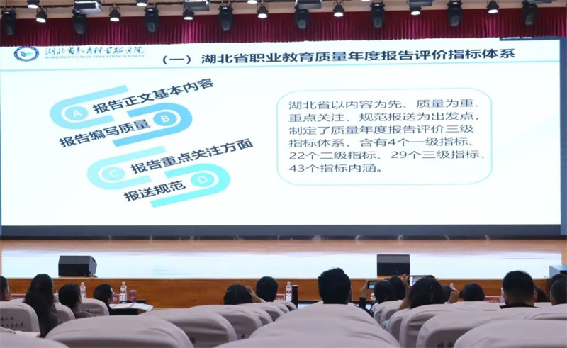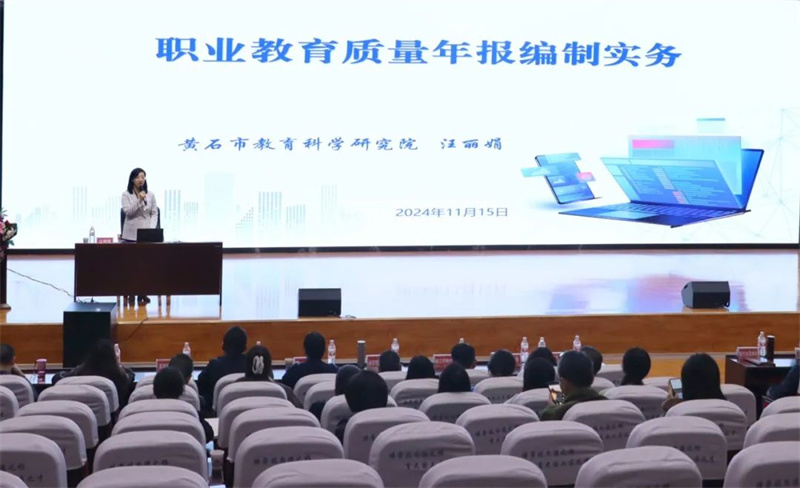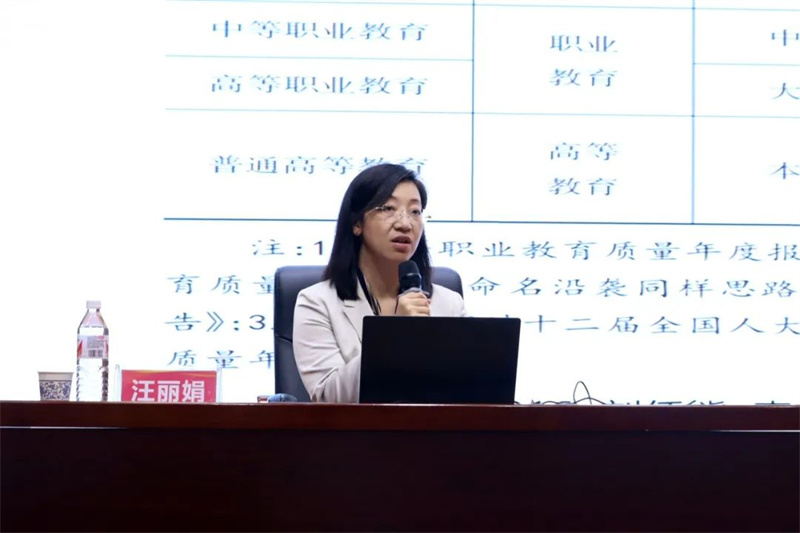 黄石市教育科学研究院副院长汪丽娟就质量年度报告编制工作中普遍存在的要素不规范、量化分析不深入等问题进行了分析解读;建议形成自上而下的责任体系,强化对指标和数据的深入研究,有针对性地遴选典型案例,严格把握时间节点。通过分享优秀案例,汪丽娟指导参会学员在编制报告时,应以“国家职业教育质量年度报告评价指标体系”为导向,以各项编制要求为抓手,以走在职业教育改革前列的院校作品为标杆,在质量年度报告编制工作中强化“前列意识”,树立“前列标准”,落实“前列要求”。