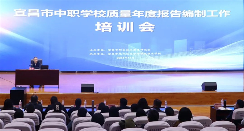 质量年度报告是职业院校坚持高质量发展、履行责任担当、宣传发展成绩、接受社会监督的重要载体。为了进一步提升宜昌市中职教育质量年度报告编制水平,充分展示职业教育办学水平和发展成果,宜昌市职业技术教育研究室组织全市中职学校于11月15日开展质量年度报告编制工作培训,此次培训由宜昌市现代信息学校承办。宜昌市职教研究室主任周欣、副主任张永胜出席会议,市级质量年报编制组成员及各院校分管编制工作的校级领导、相关科室负责人、编制工作主笔踊跃参会。