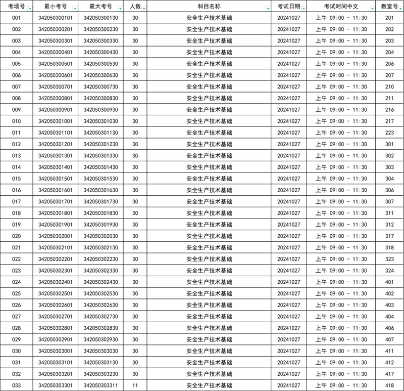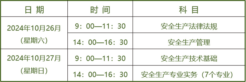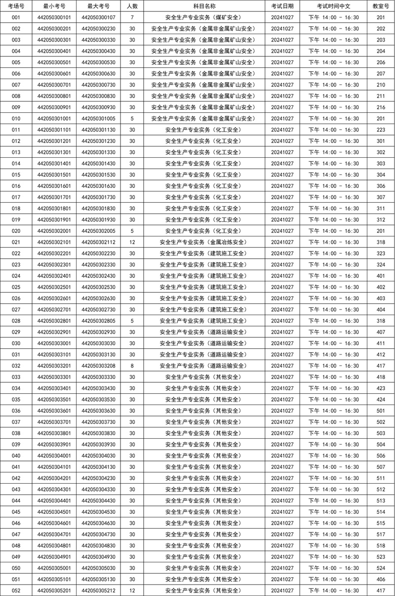 2024年中级注册安全工程师职业资格考试考场安排表