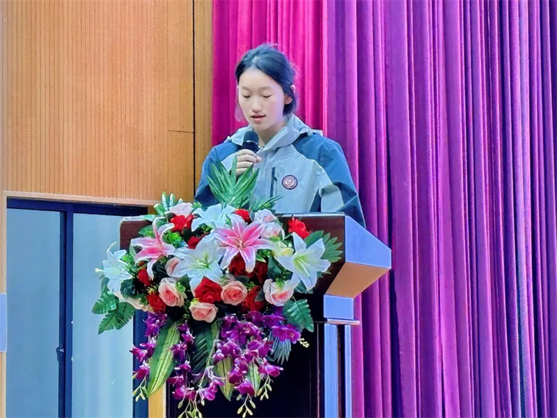 2201班周奕菲同学作为学生代表发言,她以自己的学习经历为例,分享了如何为梦想而奋斗的心得体会。周奕菲同学表示,梦想不会自动成真,唯有脚踏实地、不懈奋斗才能最终抵达成功的彼岸。她的发言真挚而鼓舞人心,赢得了现场师生的阵阵掌声。