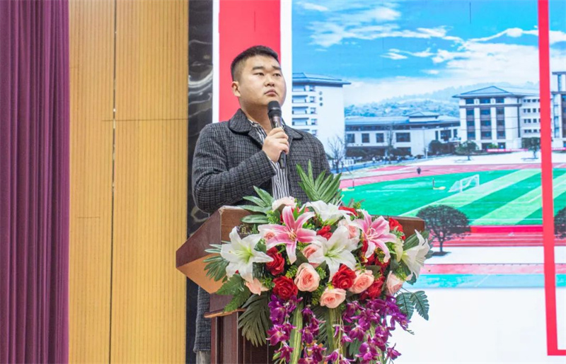 随后,吴成军对开学以来高三年级学生的学习与生活状况进行总结。他提到,大多数学生展现出良好的纪律性和学习热情,成绩稳步提升,这是令人欣慰的进步。然而,他也指出了存在的问题,如内务管理不够规范、自主学习氛围不够浓厚等,并鼓励全体同学深刻反思,积极整改,以更加自律和负责的态度面对高三生活。他强调,高三阶段是人生中至关重要的一年,面对即将到来的高考挑战,全体高三学子必须保持高度的紧迫感和责任感,以无畏的勇气、坚定的信念迎接每一个挑战。同时,吴成军还明确了高三年级接下来的工作重点和努力方向,为全体师生指明了前行的道路。