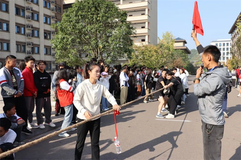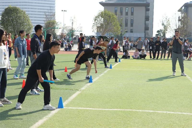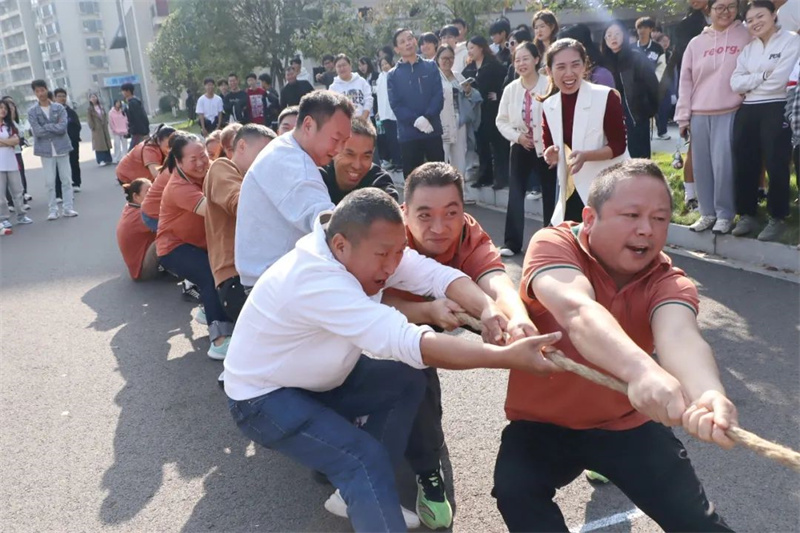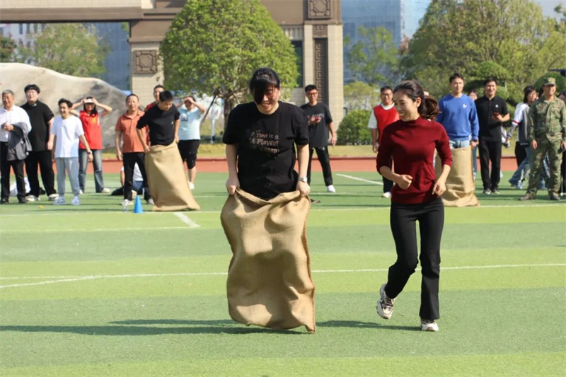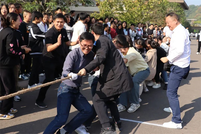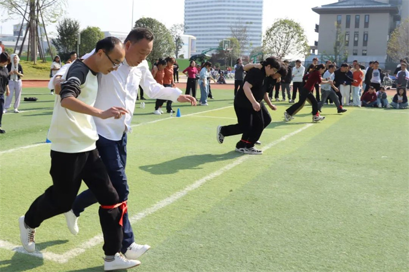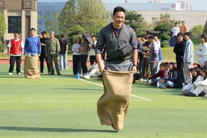 学生比赛与教职工趣味比赛双线并行。本次教职工趣味比赛设有四个项目,分别是持杆接力跑、两人三足、袋鼠跳和拔河。这四个项目集趣味性、协作性和竞技性为一体,既考验个人的体能和技巧,又强调团队协作的重要性。