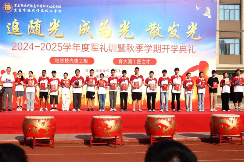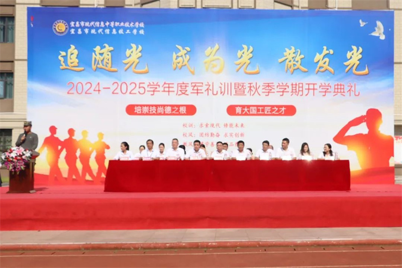 溽暑渐退秋凉起,鸿鹄振翅气象新。今秋,现代信息学校迎来了2024—2025学年度开学盛典。9月1号上午,学校举行开学典礼,现代教育集团董事长田水荣、副董事长朱宗桥、总经理胡一杰、校长吴昌钧、督学李朝晖、副校长肖飞、副校长伍远明、集团事业发展部部长吴可、后勤保障部副部长龚红艳、行政办副主任张露及学校各部门负责人参加典礼。全校师生以饱满的热情和昂扬的精神风貌齐聚校园,共启新征程。