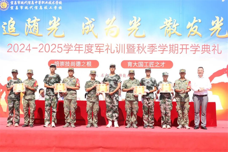 精彩纷呈的汇报表演结束后,大会对军训中涌现出的优秀学生和先进集体进行表彰。