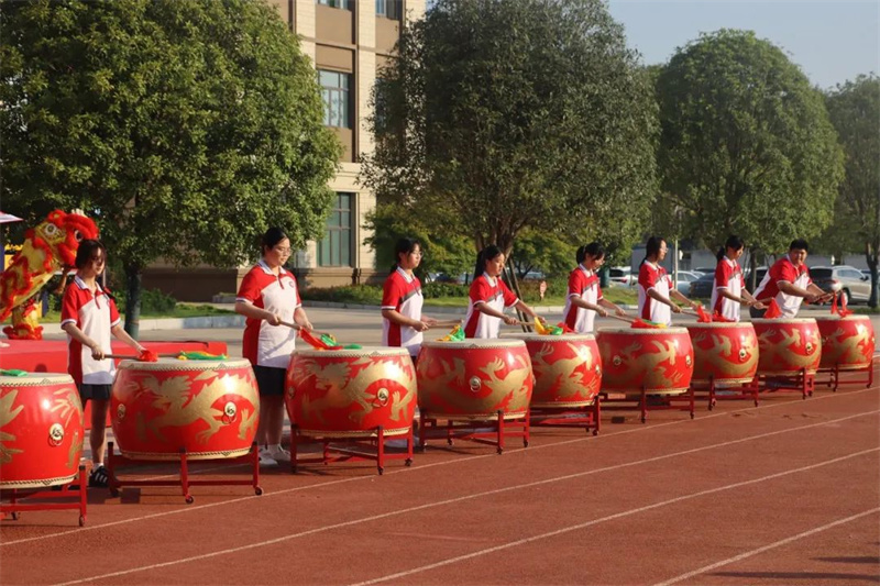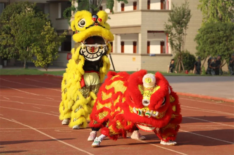 锣鼓声起,狮舞燃情菁菁学子,英姿勃发红旗猎猎,昭昭而起国歌庄严肃穆,现代学子迎朝阳屹立礼花绚烂多彩,昭示新航程续航待发
