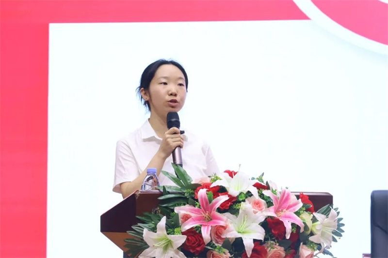 落红不是无情物,化作春泥更护花,青年教师张丽艳发言。她的发言深情而真挚,充分展现了教师对教育事业的热爱和对学生的关怀。她代表所有现代教职工承诺,将用爱心、耐心和智慧培育每一位学生,点燃学生心中的求知之火,助力他们实现梦想,帮助他们成长为有责任感、有担当的新时代青年。