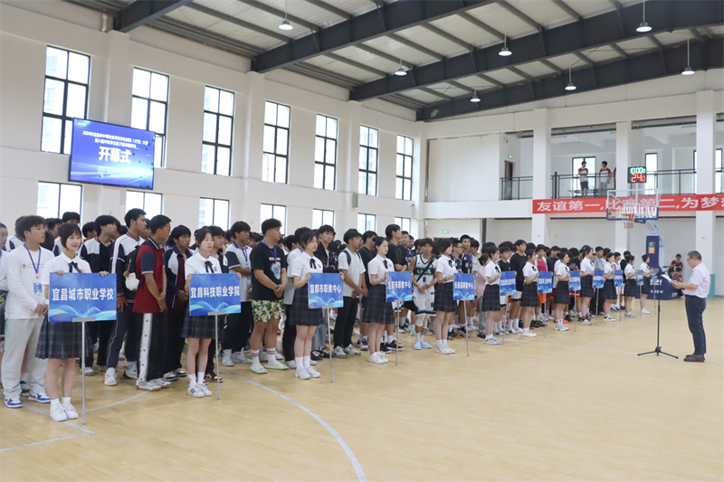 宜昌市教育局职教研究室主任周欣出席开幕式讲话并宣布比赛开幕,12所中职学校领队、裁判员、教练员、运动员与会。