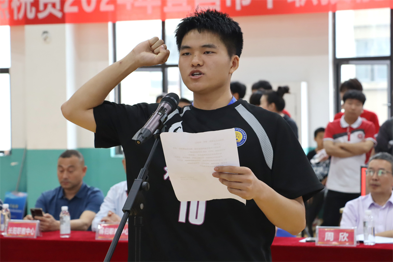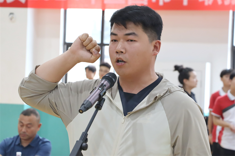裁判员代表龚润涛宣誓:坚决服从裁判长指挥,严格遵守竞赛规则和裁判员纪律,尊重参赛选手,秉公办事,做到公平、公正、公开,为本次运动会提供优质服务,圆满完成各项裁判工作。预祝运动员们取得优异成绩,预祝运动会取得圆满成功!