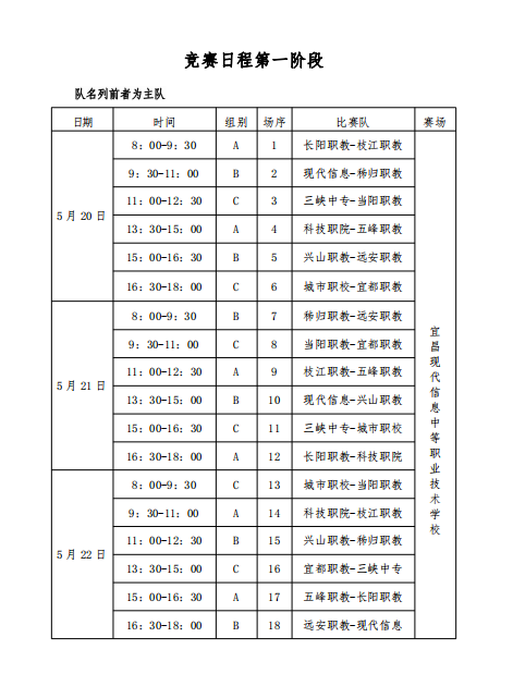 此次比赛共有12支球队参加,比赛分小组赛和淘汰赛两阶段进行,赛程为5月20日至25日。