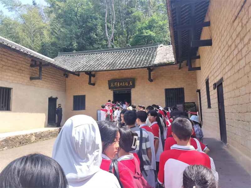 第二站,毛泽东同志故居。大家细观故居文物,感受伟人成长经历;聆听伟人故事,踏寻伟人足迹,感悟毛主席“孩儿立志出乡关,学不成名誓不还”的奋发意气和伟大革命精神。