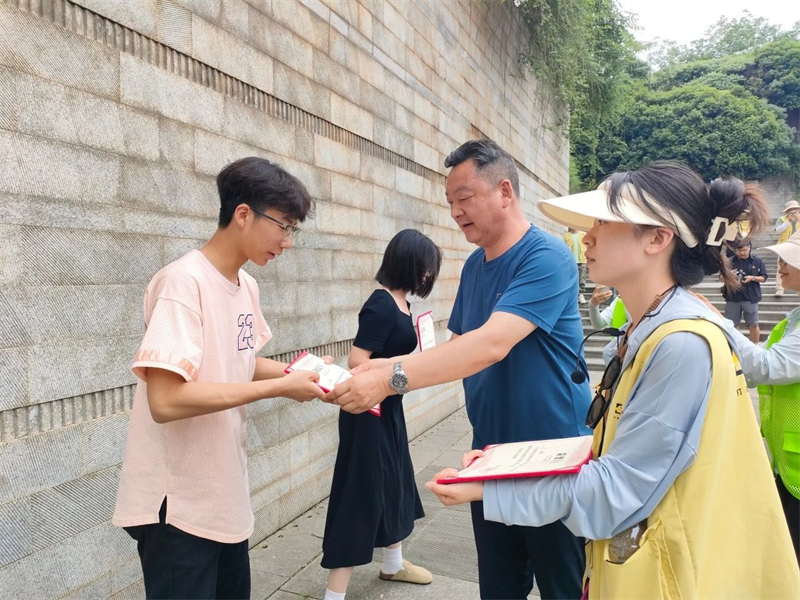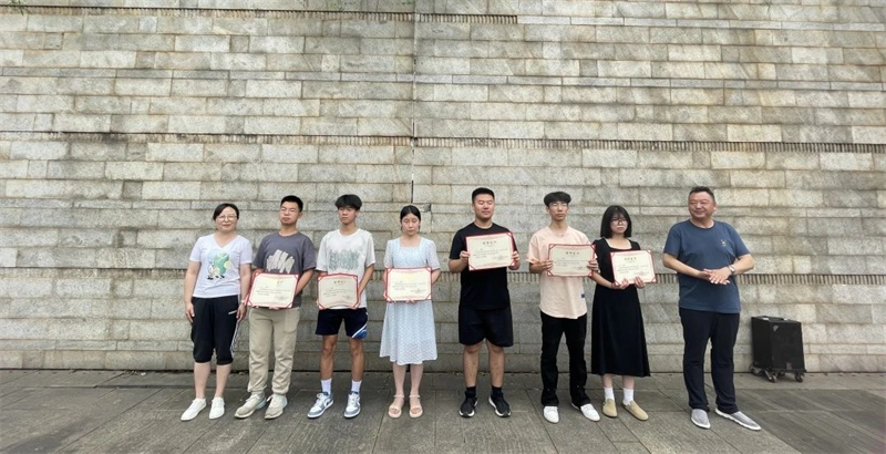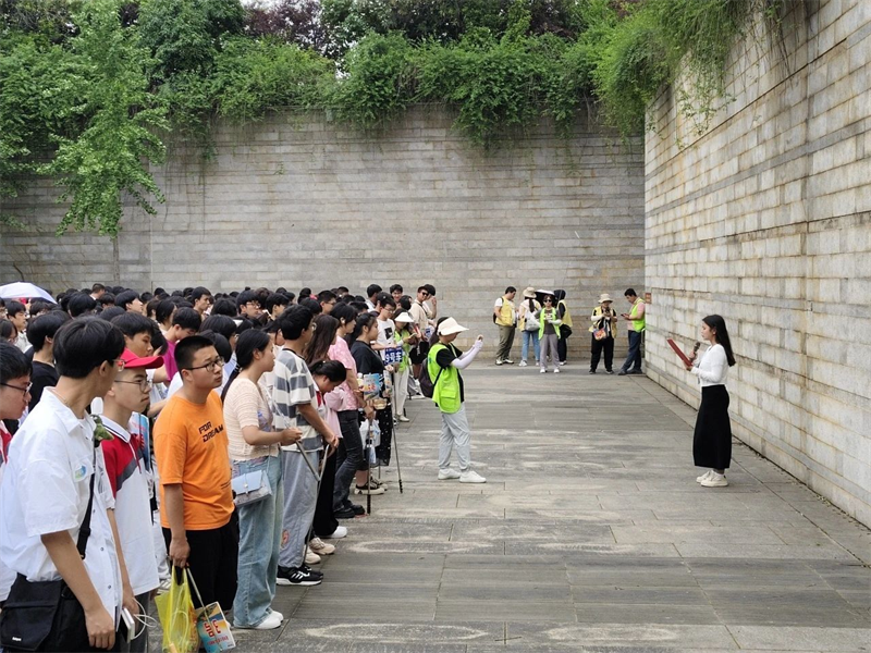 观学府红墙绿瓦,品校园书香氤氲。漫步湖南大学,一路古木参天,同学们感受着湖大人文气息并在具有纪念意义的湖南大学校址石碑处合影留恋,石碑上那斑驳粗粝的痕迹,承载着湖南大学西迁的烽火往事。