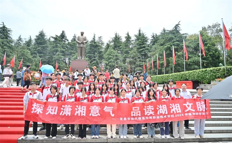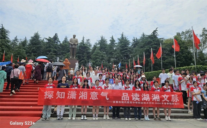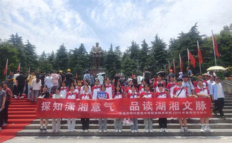 4月24日—27日,宜昌现代信息学校23级共380名师生前往湖南长沙和伟人故乡韶山,开展为期4天的“探知潇湘意气,品读湖湘文脉”的春季主题研学之旅。