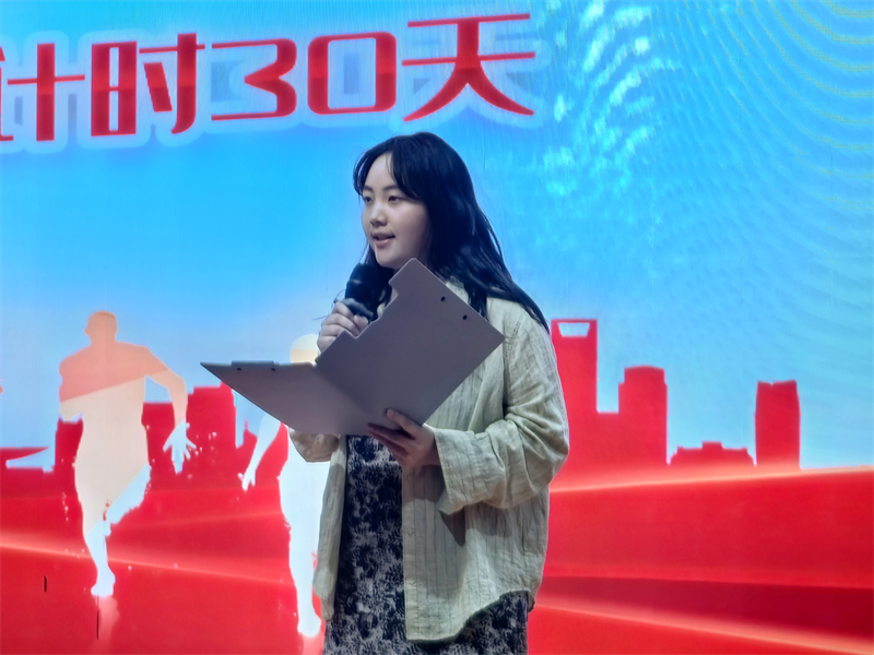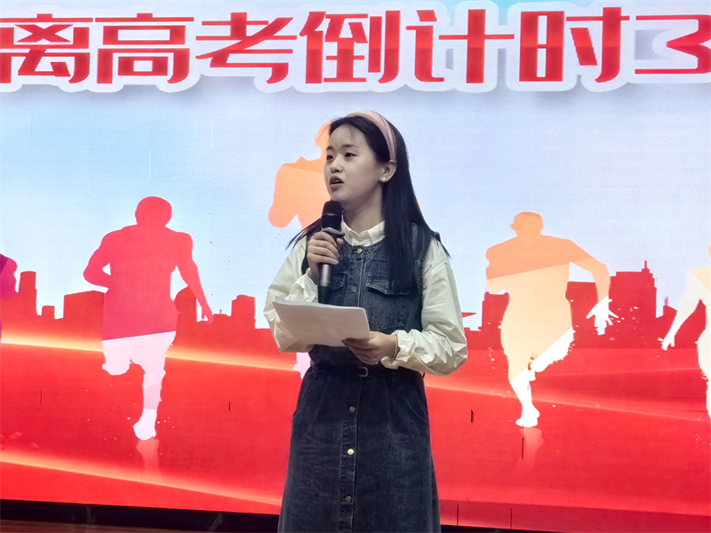 姚蕾老师代表高三英语组鼓励同学们在后一个月要充分发挥出自己的无限潜力,保持昂扬向上的斗志与精神,以志存高远的胸怀、脚踏实地的态度、精准科学的方法,心态平和充满热情地迎接高考,争取在高考考出满意成绩,于金榜题名日再聚首。