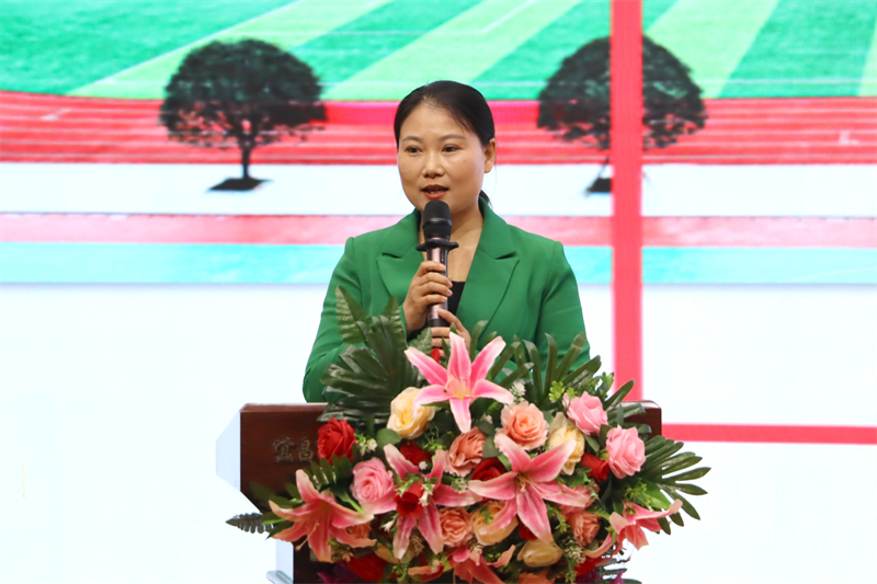 周欣主任代表教育局对本次比赛的顺利开幕表示祝贺,期望学校做好赛场组织和安全保障工作,要求各参赛队以安全为前提,严格遵守比赛规则,友谊,比赛第二,通过办赛切实促进中职生综合素养与人才培养质量的提升。同时,培养有影响力的高水平体育赛事,是宜昌职业教育发展的重要部分,也是推动体教融合的有力抓手,帮助我们达到以文化人、以体育人的目的。