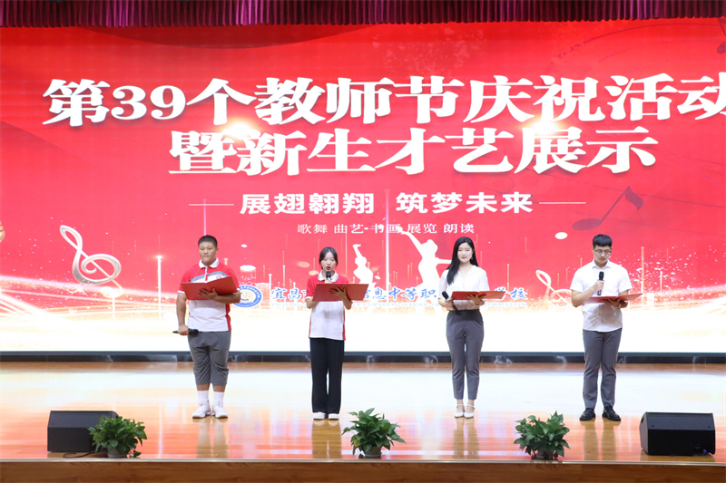 三尺讲台,三寸舌,三寸笔,三千桃李;十年树木,十载风,十载雨,十万栋梁。芬芳九月,礼颂师恩,九月,是成长的,是收获的,是感恩的。9月9日,在第39个教师节来临之际,我校开展了丰富多彩的教师节庆祝活动暨新生才艺展示。现代教育集团董事长田水荣、副董事长朱宗桥、总经理胡一杰、执行校长李朝晖、副校长肖飞出席此次活动。