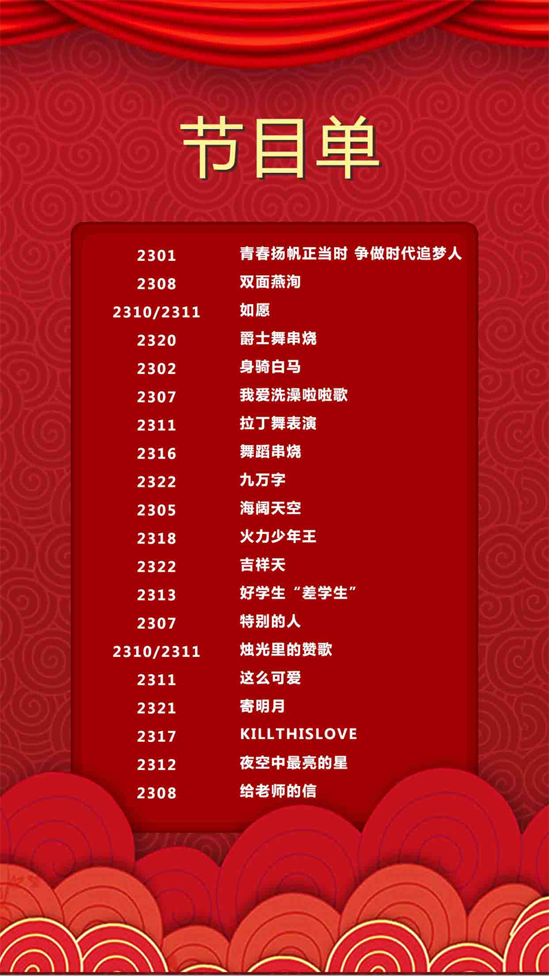 此次活动,23级各班学生带来了精彩的演出,朗诵《争做时代追梦人》《给老师的信》,给予了全体学生前行的动力,向辛勤耕耘的老师致敬;舞蹈节目精彩纷呈,国风的大气从容,热烈奔放的拉丁,充满异域风情的敦煌舞,展现了各班学生青春洋溢的面貌;吉他弹唱、剧目演出赢得全场师生的欢呼喝彩。同学们在亮出自我风采的同时,也给老师们带来了许多感动和快乐。
