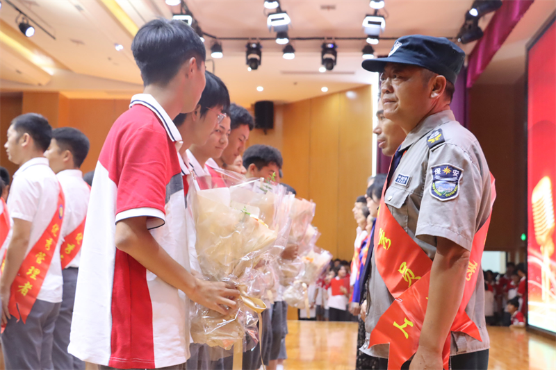雨果曾说过:“花的事业是尊贵的,果实的事业是甜美的,让我们做叶的事业吧,因为叶的事业是平凡而谦逊的。”为了向默默奉献的老师们表达深深的感谢和敬意,仪式上表彰了一批优秀教职员工,学生代表为他们献上鲜花和节日祝愿。